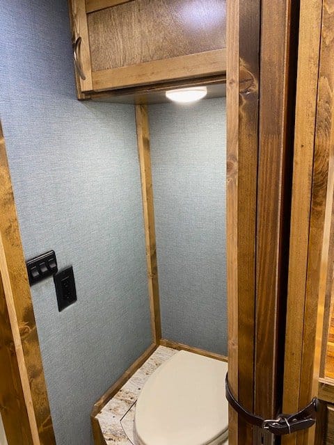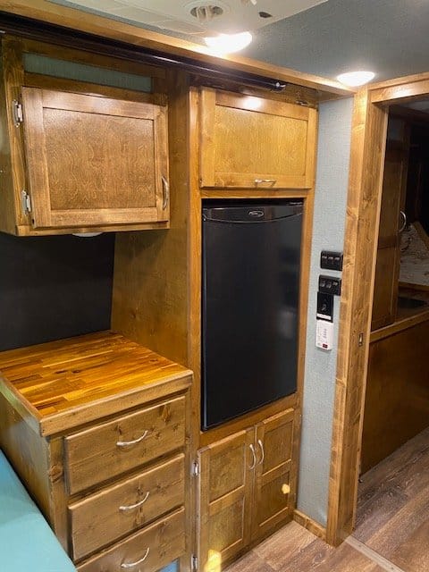 This is a high quality built rv, done by 20 plus years experienced craftsmen. All solid wood cabinets and strong latches, and there are no issues with their work. (driven 30 K miles to shows) I have many additional photos and video’s I can share. This unit has 6’4” headroom!