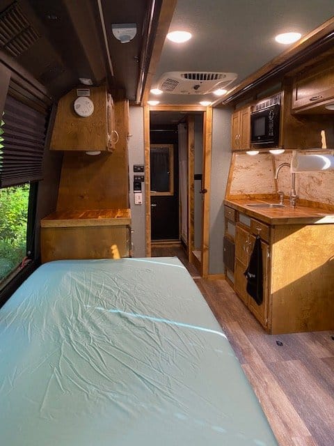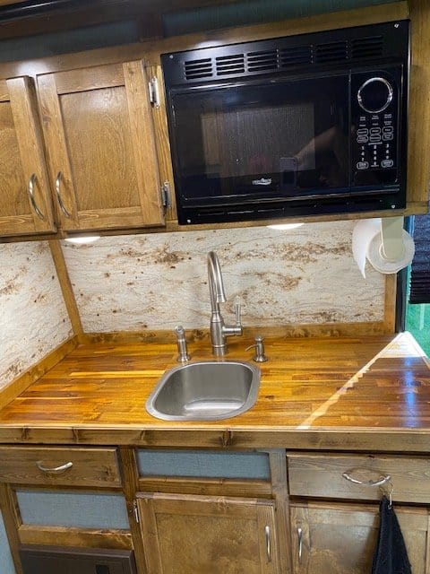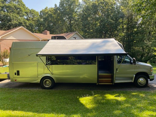 This RV runs off of 12V and Generator and 30 AMP electric. Built out just like a RV! Transfer switch when going from electric to generator. There are many electrical outlets inside the bus .It has a back door, and remote operated bi-fold doors in the body. The back door opens out to the rear platform, which has a foldup/fold down step, as shown in photos. It has two front seats, (many shuttles only have the driver seat) So New in 2020 with the exceptions as noted: Maxair Fan, Highpointe Microwave, HDTV Antenna, Suburban 10 gal Hot water heater, backup camera, Water pump (new in 9/2021) Coleman 15K BTU Air conditioner (new 6/2021) New Engine battery, 12/2022 New Front tires 2020 with only 25K on them, (Hankook) rated 50K. Rear tires 2/2020 have 5 K on them. This engine runs great! I would take it anywhere and would sell it to my mom and best friend! A cold running 4 cubic Danby refrigerator which will run off of 12V going down the road (has Inverter) Onan Generator with only 32 hours. And I run it monthly. Samsung 28” TV, Sony radio/DVD player and brand new 2023 surround sound speakers for your listening pleasure. The Cab has an apple play radio and new speakers, which includes Bluetooth, navigation, sirius XM radio (with your subscription) for your listening pleasure. Power windows, power mirrors, thick top of the line vinyl seats, no Rips, tears, peelings. Non smoking. I had a Fiamma 12 foot awning just installed, it has a 8 foot extension. The legs can be mounted against the bus as shown, or dropped down to the ground. Metal sinks/faucets made for homes, (not cheap plastic) I have all the manuals tabbed in a 3 ring binder for your learning experience. Three outside VERY bright LED lights to see your outside setup area. Has outside water hose connection to hose off. It has a 24” rear bumper platform to put , storage container for cords, hoses, and mats ect. It has a 10” memory foam Sofa/bed combination. (twin size) with full size drawers under the bed. vinyl floors, Pleated window shades, lots of cabinets! Lots of interior LED lights, 32” shower, bathroom sink, composting toilet, (much better than dumping) 30 gal. Fresh water tank, grey water tank, Pocket door for bathroom privacy, Clothes hanging closet, lots of drawers with soft close. All cabinets have reflective insulation inside. A 8 ½ foot blank wall for putting additional seating and or dining for your personal setup. Only $58,000. Clear title in hand!